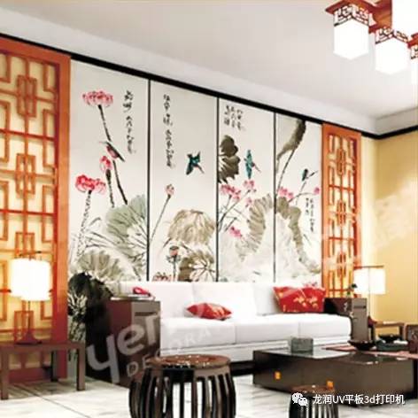 個性化彩繪為我們提供了新的家居裝修思路:彩繪木質板、彩繪吊頂、彩繪瓷磚、彩繪玻璃等逐漸成為室內裝修的新主角。相比其他裝飾材料,有著絢麗的色彩和夸張的表現手法,通過精致的圖案搭配,完美的質量體現,以及較具品位的裝飾效果,無一不在彰顯著個性。相別于前幾年的各種單純的、古典的、現代的、歐式的、中式的裝飾風格大行其道,現在的消費者在關注個性化的裝修風格之外,對于家居飾品家具等的要求也開始追求綠色環保。龍潤UV平板打印機為我們的生活增添了更多藝術個性化的裝飾方案。